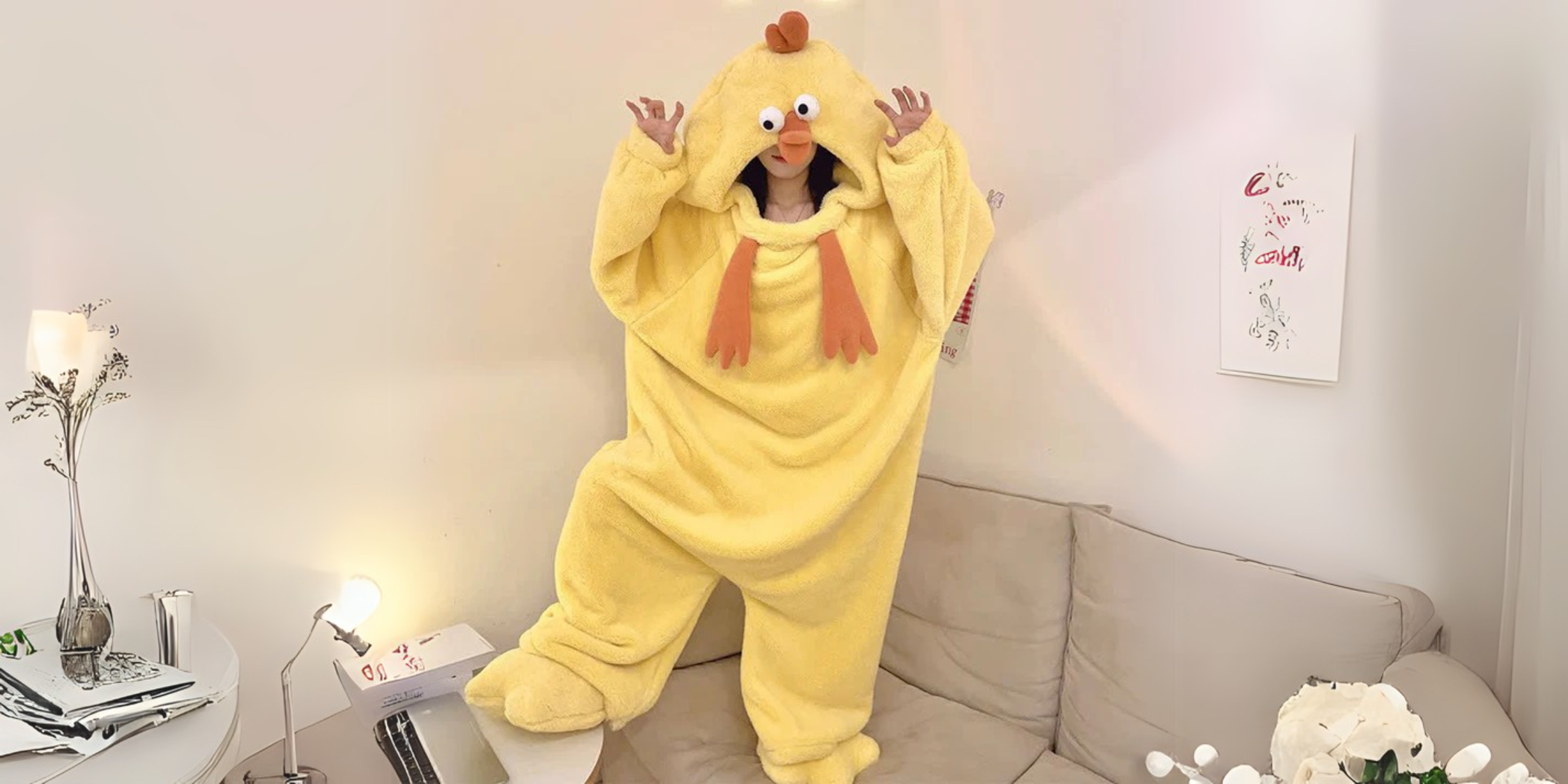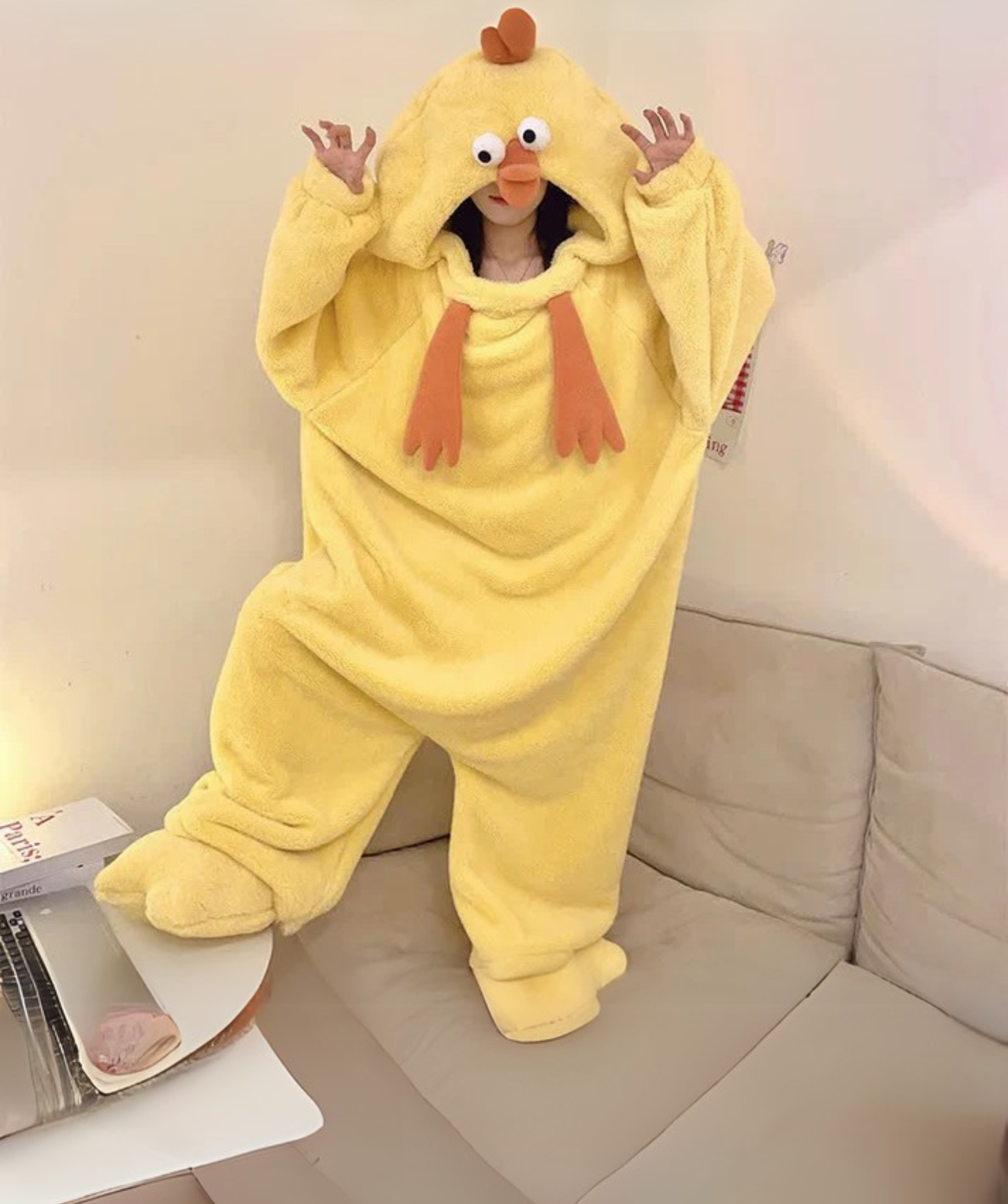 Clucksy™ is the ultimate combo of snug coziness and barnyard ridiculousness - because being a giant, fluffy chicken just feels right.
